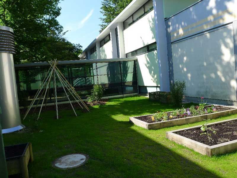 Der Schulgarten wurde verlegt und so ein neuer Bereich für die von den Kindern zu bewirtschaftenden Hochbeete geschaffen. Auch die Schulbienen fanden dort einen ruhigen Standort. Aus dem bestehenden Schulteich wurden die Molche gefangen und in ein anderes Biotop verbracht. Der neu hergestellte Schulteich wurde schnell wieder von neuen Molchen besiedelt und dient den Schulkindern für Naturbeobachtungen.